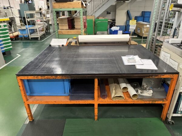 加工数量に応じて、シャーリング機を使用するほどでもなければ、手切りで材料裁断を行います。